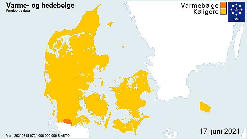 Vagthavende meteorolog går i breaking og varsler hedebølge, mens klimatologen advarer: »Husk at vi teknisk set ikke har hedebølge endnu. Her kl 11 har vi ”kun” varmebølge i dele af Sønderjylland, Sydfyn, Lolland og Sjælland.«