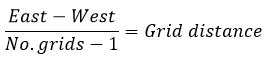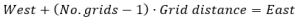 Now use the calculated grid distance along with the western reach and the number of grids to calculate the accurate eastern reach by using the following equation: