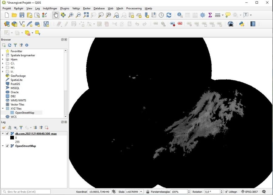 This step-by-step guide shows how to import radar data for composite and pseudo CAPPI files from DMI's STAC-API into QGIS.