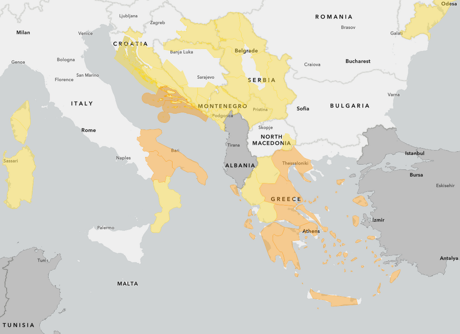 Et kraftigt lavtryk over det sydlige Italien er i gang med at dele sig i to separate storme. Den ene storm tager turen mod nord til Adriaterhavet og er af de italienske meteorologer døbt “Cassio”. Cassio vil give kraftig vind og store mængder regn til det østlige Italien og det vestlige Balkan i dag.