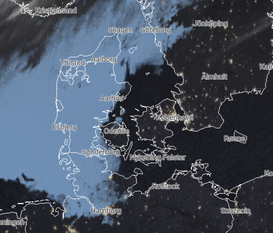 Her i de tidlige morgentimer er der skyer og tåge, især i den vestlige del af landet. På Fyn og i Østjylland er tågen stedvis så tæt, at vi har udsendt et DMI Varsel for tæt tåge eller rimtåge.