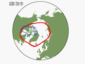 Samtidig har luften i ozonlaget over de arktiske områder været isoleret fra opblanding med ozonrig luft fra lavere breddegrader.