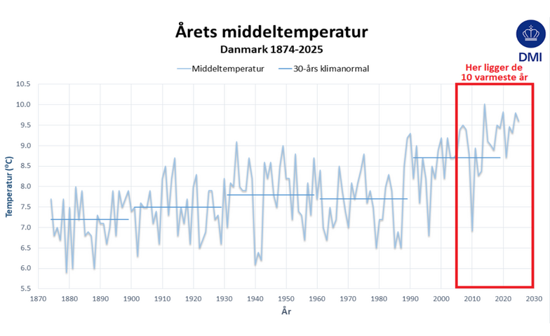 Februar fik trukket gennemsnittet for hele vinteren op over normalen (1991-2020) med 4,4 grader i middeltemperatur.