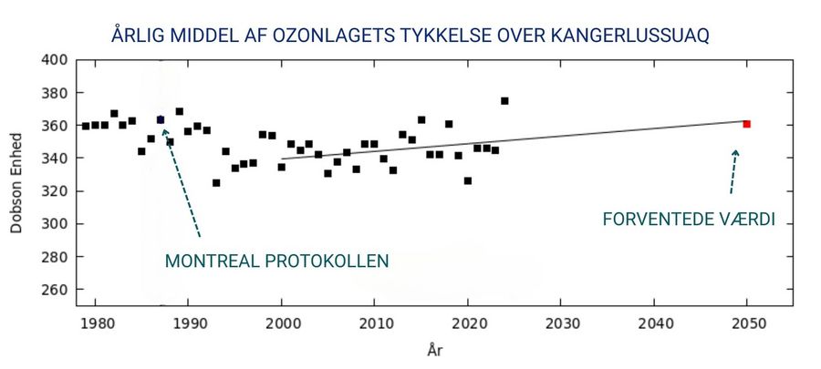 Målinger over Arktis i 2024 viser dog usædvanligt høje værdier for ozonlaget, og man kunne forledes til at tro, at vi allerede var i mål.